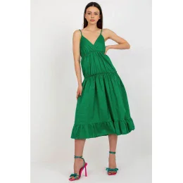 Letné šaty na nastaviteľných ramienkach s obálkovým výstrihom a ozdobným volánikom v spodnej časti. Šaty majú podšívku. Spodná časť šiat je rozšírená.