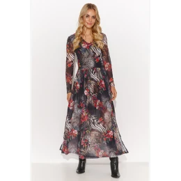 Tieto jedinečné dlhé šaty z ľahkého materiálu nesmú chýbať vo vašom šatníku. Trojuholníkový výstrih a dlhé rukávy dodávajú šatám ležérny štýl a praktické každodenné využitie. Bočné rozparky zasa dodávajú šatám ľahkosť. Dôležitým prvkom je všitá viskózna podšívka, ktorá diskrétne zakrýva strategické miesta. Vonkajší materiál je napoly priehľadný, s potlačou. Tvorba je k dispozícii v piatich variantoch, ktoré sa líšia farbou a vzorom. Každý z nich je ideálnou kombináciou s lodičkami alebo lodičkami a elegantným kabátom. Tieto šaty vám dodajú pocit jedinečnosti a sú vhodné na mnohé príležitosti, od romantickej večere až po spontánnu prechádzku po meste.