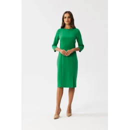 Představujeme vám okouzlující šaty tužkového střihu, které kombinují klasický šarm s moderním stylem. Jsou vyrobeny z vysoce kvalitní látky, takže jsou nejen elegantní, ale také pohodlné. Kulatý výstřih jim dodává na jemnosti. Modelující prošití procházející středem šatů zvýrazňuje siluetu a dodává eleganci. Rukávy ve 3/4 délce jsou univerzální a módní. Délka šatů sahá nad kolena, což jim dává univerzálnost pro různé příležitosti. Na přední straně a na boku je rozparek, který šatům dodává charakter. Skrytý zip na zádech usnadňuje oblékání. Šaty nemají podšívku, takže jsou lehké a pohodlné na nošení. Tyto šaty byly navrženy a ušity v Polsku, což svědčí o jejich kvalitě a jedinečnosti. Jsou ideální volbou pro mnoho příležitostí, od formálních setkání až po uvolněnější akce, a dodají vám sebevědomí a styl.