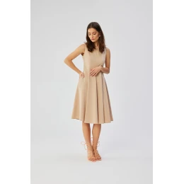 Vstupujeme do světa polského designu a představujeme jedinečné šaty, které vyzařují styl, eleganci a pečlivé řemeslné zpracování. Tento jedinečný výtvor byl navržen a ušit v Polsku s důrazem na detail a individualitu. Šaty bez rukávů zaujmou vypasovaným střihem v horní části, který zdůrazňuje půvaby postavy, aby se později směrem dolů jemně rozšířily. Silně naznačený pas dodává šatům ženský půvab a neobyčejnou eleganci, díky níž se každá žena, která je nosí, cítí výjimečně. Podlouhlé zeštíhlující prošití dodává šatům jemné tvarování a zvýrazňuje přednosti postavy. Kulatý výstřih vpředu dodává šatům klasický vzhled, zatímco výstřih do V na zádech dodává šatům nádech smyslné rafinovanosti. Skrytý zip umístěný na zádech poskytuje elegantní a zároveň praktický způsob, jak šaty obléknout. Jako bonus přidávají boční kapsy šatům ležérní nádech a činí z nich praktickou a pohodlnou volbu. Šaty