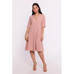 Látkové šaty sú výnimočným príkladom poľského dizajnu, ktorý spája jednoduchosť tvaru, funkčnosť a eleganciu. Tento model v lichobežníkovom tvare vyzerá mimoriadne štýlovo a je ideálnou voľbou na mnohé príležitosti. Šaty sa pohodlne nosia, pretože sa nasadzujú cez hlavu, takže ich obliekanie je rýchle a pohodlné. Krátke rukávy dodávajú šatám ľahkosť a univerzálnosť, takže sú ideálne na teplejšie dni. Na zadnej strane je krytý zips, ktorý šatám dodáva eleganciu a uľahčuje ich obliekanie. Vrecká umiestnené v bočných švoch sú praktickým prvkom, ktorý šatám dodáva nonšalantnosť a robí ich ešte funkčnejšími. Vďaka absencii podšívky sú šaty ľahké a príjemné na pokožke, ideálne na letné dni. Návrh a výroba šiat sa realizuje v Poľsku, čo podčiarkuje miestny charakter a dôraz na kvalitu spracovania. Tieto šaty sú nielen výrazom elegancie, ale aj hrdosti na poľské remeslo a dizajn, pričom spájajú jednoduchosť tvarov s vysokým štandardom pohodlia.