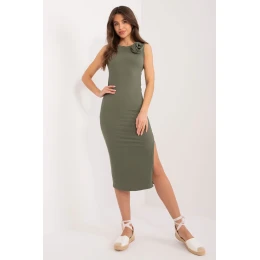 Letní šaty z žebrované látky jsou kombinací sofistikovaného stylu a lehkosti, ideální pro každý den. Tyto šaty jsou vyrobeny z vysoce kvalitní bavlny pro pohodlné nošení a volnost pohybu a nesmí chybět ve vašem letním šatníku. Jejich tužkový střih zvýrazňuje ženskou siluetu, dodává eleganci a sofistikovanost a zároveň zajišťuje pohodlí po celý den. Díky midi délce jsou šaty univerzální a ideální pro různé situace. Šaty jsou bez rukávů, takže jsou ideální pro teplé letní dny a umožňují pokožce volně dýchat. Kulatý výstřih je univerzální a hodí se k mnoha různým stylům. Na přední straně šatů je umístěna ozdobná látková květina, která dodává šatům jemnost a dívčí půvab. Tento jedinečný prvek dodává šatům charakter a činí je velmi nápadnými. Tyto šaty z žebrované látky jsou ideální volbou pro každodenní nošení a dodají styl a svěžest každému letnímu outfitu. Ať už se jedná o líné procházky po pl