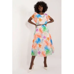 Letné šaty s krátkymi rukávmi, okrúhlym výstrihom a rozšíreným lemom. Šaty z farebnej vzorovanej látky s podšívkou. Ideálne na mnohé príležitosti.
