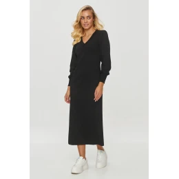 Tento šaty jsou dokonalým příkladem elegance spojené s pohodlím. Model má jednoduchý, lehce přizpůsobený střih o délce midi, který zvýrazňuje siluetu a zároveň zajišťuje pohodlí. Subtilní rozštěp na zadní straně šatů neomezuje pohyb. Je vyroben z měkkého, elastického materiálu, který dobře padne na tělo, což ho činí ideálním na mnoho příležitostí. Výstřih je zakončen lemováním ve tvaru písmene V, což dodává šatům subtilní eleganci a jemně zúží krk. Dlouhé rukávy jsou zakončeny širokými lemy, což dává celku klasický vzhled. Rukávy mají lehké nafouklé ramena, což šatům dodává moderní charakter. Taková kreace je ideální na každodenní vycházky, setkání s přáteli nebo dokonce do práce, kde je neformální dress code. Navíc model kombinuje klasiku s nádechem modernosti, což ho činí všestranným kouskem do šatníku.