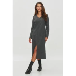 Dresové šaty jsou elegantní, ale zároveň jednoduchý návrh na každý den, který kombinuje minimalismus s trochou stylu. Model má jednoduchý, přiléhavý střih, který zdůrazňuje siluetu, ale zároveň zůstává pohodlný. Délka šatů sahá do poloviny lýtek, což jim dodává klasický charakter. Měkký a elastický materiál zajišťuje pohodlí při nošení po celý den. Šaty mají dlouhé rukávy, ideální na chladnější dny. Výstřih má tvar písmene V, který opticky prodlužuje krk a dodává eleganci. Na přední straně šatů je jemný rozštěp níže, což jim dodává lehkost a umožňuje volnost pohybu. Můžete je sladit s bílými teniskami, což dodá celku sportovní, ale stále elegantní vzhled, nebo nosit s botami nebo baletkami, abyste dosáhli více formálního efektu. Tyto šaty jsou ideální volbou na každodenní vycházky, setkání s přáteli nebo do práce. Díky svému jednoduchému střihu a elegantním detailům je lze snadno stylizovat na různé p