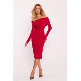 Tieto šaty s dlhými rukávmi sú vyrobené z rebrovaného bavlneného úpletu a majú priliehavý strih, ktorý jemne zvýrazňuje siluetu. Nosia sa cez hlavu, sú pohodlné a asymetrický výstrih im dodáva moderný, zaujímavý charakter. Dodatočné nariasenie na boku dodáva strihu dynamiku a eleganciu a zároveň zoštíhľuje siluetu. Šaty boli navrhnuté a ušité v Poľsku, čo svedčí o precíznosti výroby a najvyššej kvalite materiálov. Ideálne na špeciálne príležitosti aj každodenné nosenie.