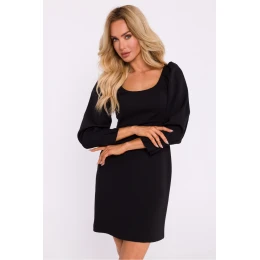 Pôvabné mini šaty z vysokokvalitnej tkaniny, ideálne na špeciálne príležitosti. Strih pod prsiami zdôrazňuje ženskú siluetu, zatiaľ čo hlboký štvorcový výstrih dodáva originalitu a jemne odhaľuje dekolt. Šaty majú dlhé rukávy s jemnými púčikmi na ramenách, ktoré dodávajú objem, a šikmý strih v spodnej časti pre dokonalé prispôsobenie. Krytý zips na chrbte umožňuje pohodlné nosenie a dokonalé prispôsobenie. Šaty sú ľahké a bez podšívky. Navrhnuté a ušité v Poľsku, sú kvintesenciou elegancie a ženského šarmu.