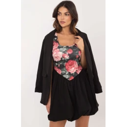 Tieto mini šaty sú ideálnou voľbou na každodenné nosenie, pretože kombinujú pohodlie a módny vzhľad. Sú vyrobené zo zmesi viskózy a polyesteru, vďaka čomu sú ľahké a pohodlné, zatiaľ čo všitá podšívka dodáva pohodlie a pôsobí skvele. Vrchnú časť šiat zdobí jemná kvetinová potlač, zatiaľ čo spodná časť je ponechaná v jednofarebnej, klasickej čiernej farbe pre štýlový kontrast. Šaty majú okrúhly výstrih a ramienka, ktoré zvýrazňujú ľahkosť strihu. Všité košíčky poskytujú dodatočnú oporu a vďaka absencii zapínania sa šaty ľahko nosia.