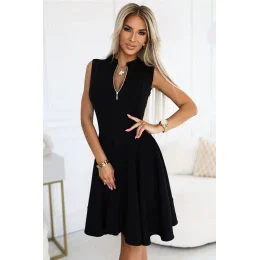 Roztiahnuté šaty Numoco so zipsom vpredu v elegantnej čiernej farbe sú vyrobené z elastického hrubšieho úpletu, ktorý poskytuje pohodlie a dokonale sa prispôsobí postave. Poľský výrobok, ideálny na rôzne príležitosti.