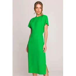 Elegantné a ženské midi šaty s priliehavým strihom, ktorý zvýrazňuje siluetu. Vrchná časť s drapériou dodáva šatám klasický charakter, zatiaľ čo hlboký výstrih do V na chrbte dodáva jemnú zmyselnosť. Krátke rukávy zaručujú pohodlie a všestrannosť na rôzne príležitosti. Šaty sa zapínajú na skrytý zips na boku, vďaka čomu skvele sedia na postave. Rozparok na boku dodáva ľahkosť a voľnosť pohybu. Navrhnuté a ušité v Poľsku s dôrazom na detail a vysokú kvalitu spracovania. Ideálne na elegantné výlety, večierky a výnimočné príležitosti.