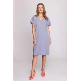 Voľné šaty, ktoré poskytujú voľnosť pohybu a pohodlie počas celého dňa. Dĺžka po kolená je univerzálnou voľbou na mnohé príležitosti. Krátke rukávy dodávajú ľahkosť, čo je ideálne na teplejšie dni. Výstrih v tvare písmena V jemne zvýrazňuje krk a dodáva šatám ženský charakter. Skrytý zips na chrbte zaručuje pohodlie pri obliekaní a ďalší rozparek na chrbte dodáva elegantný akcent. Šaty sú bez podšívky, vďaka čomu sú ešte vzdušnejšie a pohodlnejšie. Navrhnuté a ušité v Poľsku, čo zaručuje vysokú kvalitu spracovania a pozornosť venovanú detailom. Skvelá voľba pre ženy, ktoré oceňujú štýl, pohodlie a eleganciu v každodennom oblečení.