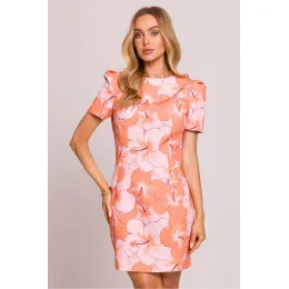 Elegantné a ženské mini šaty z kvalitnej tkaniny s kvetinovou potlačou. Model zvýrazňuje pás vďaka jemnému prešívaniu a krátke rukávy s vypchávkami mu dodávajú výnimočný charakter. Šaty sa zapínajú vzadu na skrytý zips, čo zaručuje pohodlné nosenie a estetické prevedenie. Absencia podšívky zaručuje, že sú ľahké a ideálne na teplé dni. Celý kúsok bol navrhnutý a ušitý v Poľsku s dôrazom na každý detail.