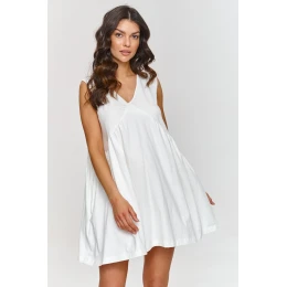 Tato šatová trapezová šaty jsou skvělou volbou pro ženy, které ocení pohodlí a styl. Byla navržena ve volném střihu, který poskytuje plnou volnost pohybu. Trapezový střih umožňuje zakrýt široké boky nebo plné stehna, což dodává postavě vyváženější vzhled. Šaty mají výstřih do srdíčka, co zdůrazňuje jejich jemnost a ženskost. Mini délka je skvělý způsob, jak zdůraznit nohy zároveň podtrhnout lehkost a smyslnost. Model je vyroben z bavlněného a příjemného materiálu, který je prodyšný a prodyšný, což z něj činí skvělou volbu na teplejší dny. Šaty se vyznačují multifunkčností a nadčasovým stylem. Ideální pro procházky s lehkými sandály na ploché podrážce, na setkání s přáteli s pohodlnými baletními bytůstkami, nebo na večerní výlety v kombinaci s elegantními podpatky a jemnými šperky.