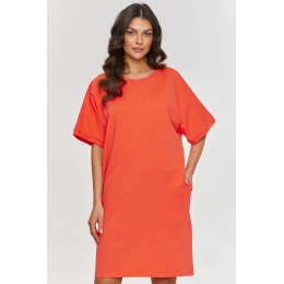 Šaty s krátkým rukávem jsou skvělou volbou pro ženy, které ocení jednoduchost a eleganci ve svých každodenních stylizacích. Jejich volný střih s lehkými detaily, jako jsou švy na přední straně, jí dodávají moderní a zároveň univerzální charakter. Široký rukáv sahající po loket dodává volný, ležérní akcent, zatímco zůstává elegantní. Výstřih šatů má klasický, kulatý tvar, který jemně zdůrazňuje krk, zachovávajíc jednoduchost kreace. Kapsy po stranách jsou praktickým prvkem, který přidává funkcionalitu, zatímco zachovává minimalistický vzhled. Model má délku po kolena, což skvěle zdůrazňuje nohy, vytvářejíc svěží, lehký vzhled. Šaty lze kombinovat s mnoha stylizacemi a jsou skvělým pozadím pro módní doplňky. Můžete je spojit s elegantními doplňky na večerní výstup nebo s ležérními na každý den. Díky jednoduchému, ale efektnímu střihu jsou ideální základnou pro každý den, do práce, na setkání s přáteli