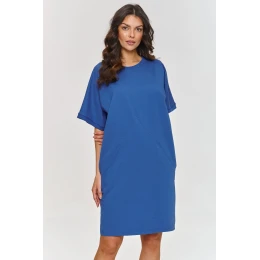 Šaty s krátkými rukávy jsou skvělou volbou pro ženy, které ocení jednoduchost a eleganci v každodenních stylizacích. Jejich volný střih s lehkými detaily, jako jsou švy na přední straně, jí dodávají moderní, ale zároveň univerzální charakter. Široký rukáv sahající k lokti přináší volný, ležérní akcent, zatímco zůstává elegantní. Výstřih šatů má klasický, kulatý tvar, který jemně zdůrazňuje krk, zachovávajíc jednoduchost kreace. Kapsy po stranách jsou praktickým prvkem, který přidává funkcionalitu, zatímco zachovává minimalistický vzhled. Model má délku po kolena, což dokonale zdůrazňuje nohy, vytvářejíc svěží, lehký vzhled. Šaty se hodí k mnoha stylizacím a jsou skvělým pozadím pro módní doplňky. Můžete je kombinovat s elegantními doplňky na večerní vycházku nebo s ležérními na každý den. Díky jednoduchému, ale efektnímu střihu jsou ideální základ pro každý den, do práce, na setkání s přáteli nebo