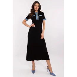 Tieto pletené midi šaty sú ideálnou voľbou na každodenné nosenie aj do práce. Sú vyrobené z mäkkej a elastickej zmesi viskózy a polyamidu, vďaka čomu poskytujú pohodlie počas celého dňa. Hladký rebrovaný materiál dokonale sedí na postave a zvýrazňuje jej prednosti. Šaty majú klasický okrúhly výstrih a krátke rukávy, čo z nich robí univerzálnu voľbu na rôzne príležitosti. Zapínanie na gombíky vpredu na krátkej časti dodáva jemný pôvab a zdôrazňuje ženský charakter strihu. Je to nadčasová voľba, ktorá sa bude dobre hodiť do kancelárie aj do každodenného outfitu.