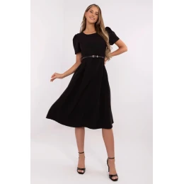Tieto klasické a ženské šaty s rozšíreným strihom sú skvelou voľbou pre ženy, ktoré oceňujú eleganciu a pohodlie. Sú vyrobené z mäkkého, elastického materiálu (polyester s prídavkom elastanu), krásne sedia na postave a zaručujú voľnosť pohybu. Model v midi dĺžke s krátkymi rukávmi a okrúhlym výstrihom je vhodný do práce aj na spoločenské udalosti. Jemné záhyby na ramenách a v páse dodávajú decentný objem a zvýrazňujú pás a zopnutý pás ešte viac zdôrazňuje ženskú siluetu. Hladký materiál v kombinácii s jednoduchou líniou a zipsom na chrbte vytvára nadčasový vzhľad, ktorý sa hodí k elegantným doplnkom.