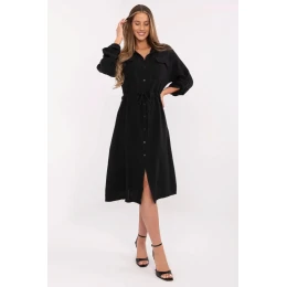 Elegantné letné šaty v košeľovom štýle, vyrobené z priedušnej prírodnej bavlny. Vďaka hladkej tkanine a klasickej midi dĺžke sú skvelou voľbou na každodenné nosenie. Majú dlhé rukávy s možnosťou ohrnutia, praktický golier a zapínanie na gombíky po celej dĺžke. Šnurovačka v páse jemne zvýrazňuje pás a našité vrecká na hrudi dodávajú funkčnosť a charakter. Ideálne na prechádzky, do práce alebo na stretnutie s priateľmi, všestranné a vždy štýlové.