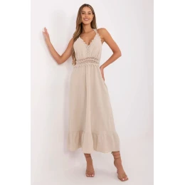 Vložte do svého šatníku trochu letní pohody a ženského šarmu s touto rozkročenou šaty v boho stylu. Vyrobená z prodyšné bavlny s přídavkem elastanu, zaručuje pohodlí a volnost pohybů i v horkých dnech. Midi šaty s vázanými ramínky kolem krku krásně zdůrazňují ramena a záda. Výstřih do podkovy jemně zdůrazňuje ženskou siluetu a ozdobná krajková výšivka na přední straně dodává celku romantický charakter. Hladký materiál a volánky na dně dělají šaty lehké a vzdušné. Ideální volba na každodenní letní příležitosti jako je procházka, pláž nebo setkání s přáteli. Styl boho v nejlepším, ženském provedení. Délka šatů uvedená v tabulce bez vázání. Délka vázání je 72 cm.