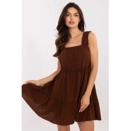 Mäkké a priedušné letné šaty ušité z prírodnej, priedušnej mušelínovej bavlny, ideálne na teplé slnečné dni. Hladká tkanina a rozšírený strih vytvárajú ľahký, voľný komplet, ktorý sa krásne prispôsobí postave. Model s dĺžkou pred kolená, so širokými ramienkami a moderným štvorcovým výstrihom, ktorý jemne zvýrazňuje ramená a líniu krku. Šaty sa nosia cez hlavu, čo zaručuje pohodlie a jednoduché nosenie. Ďalším prvkom je volánik v spodnej časti, ktorý dodáva celku dievčenský pôvab a jemný pohyb pri chôdzi. Skvelé na každodenné nosenie pri prechádzkach, na pláži, pri nakupovaní alebo letných stretnutiach.