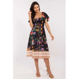 Romantické a štýlové letné šaty s kvetinovým strihom, ktoré očaria ženskou eleganciou a ľahkosťou. Sú vyrobené z priedušnej zmesi ľanu a polyesteru, sú skvelé na teplé dni a poskytujú pohodlie a voľnosť pohybu. Model v midi dĺžke má krátke nadýchané rukávy a moderný štvorcový výstrih, ktorý krásne zvýrazňuje kľúčne kosti. Šaty sa preťahujú cez hlavu, takže sú pohodlné a praktické na každý deň. Jemný kvetinový vzor dodáva sviežosť a kontrastné lemovanie v spodnej časti dodáva originálny akcent, vďaka ktorému tento model vynikne medzi ostatnými. Ideálne na prechádzky, stretnutia s priateľmi alebo letné výlety do mesta.