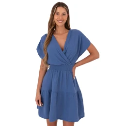 Tieto ľahké a vzdušné mušelínové šaty sú ideálnou voľbou na letné dni. Sú vyrobené z prírodnej bavlny a zaujmú pohodlím pri nosení a jemnosťou materiálu. Rozšírený strih sa pri pohybe krásne prehýba a dodáva siluete ľahkosť a jemnú eleganciu. Model s dĺžkou po kolená má krátke rukávy a ženský výstrih v tvare presýpacích hodín, ktorý opticky predlžuje krk a zvýrazňuje poprsie. Vyztuženie v páse jemne zvýrazňuje pás, čím vytvára elegantnú líniu postavy, a vďaka absencii zapínania sa šaty ľahko obliekajú a sú mimoriadne pohodlné na každodenné nosenie. Hladký vzor a klasický strih z nich robia univerzálny kúsok šatníka, ideálny na prechádzku, nákupy alebo stretnutie s priateľmi.