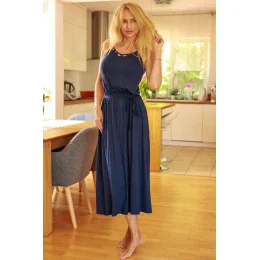 Tieto dlhé šaty sú vyrobené z viskózy s ozdobným výstrihom. Šaty majú na jednej strane rozparek a pás je zvýraznený priliehavým elastickým pásom. Vďaka týmto riešeniam sú šaty neuveriteľne pohodlné. K šatám je pripojený dodatočný opasok, ktorý môže (ale nemusí) ešte viac zvýrazniť postavu. Ďalšou výhodou je priedušná viskóza, z ktorej boli šaty vyrobené. Ideálne na prechádzku po pláži, prehliadku pamiatok alebo večerné posedenie s priateľmi.