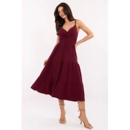 Tieto letné mušelínové midi šaty na ramienka sú ideálnou voľbou na každodenný pohodlný styling. Sú vyrobené z mäkkej a priedušnej bavlny, sú skvelé na teplé dni, poskytujú ľahkosť a pohodlie. Rozšírený strih sa krásne prispôsobí postave a hladká tkanina zdôrazňuje prirodzený, minimalistický štýl. Prekrížený výstrih jemne zvýrazňuje dekolt a dodáva ženský šarm. Šaty nemajú zapínanie, nosia sa cez hlavu a elastické rukávy pod prsiami a na chrbte zabezpečujú ideálne prispôsobenie postave. Dodatočný volánik v spodnej časti dodáva šatám romantický, dievčenský nádych. Skvelé na prechádzku, stretnutie s priateľmi alebo letný deň v meste.