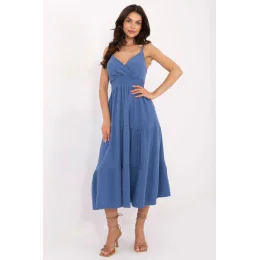 Tieto mušelínové letné midi šaty na ramienka sú ideálnou voľbou na každodenné pohodlné oblečenie. Sú vyrobené z mäkkej a priedušnej bavlny, sú skvelé na teplé dni a poskytujú ľahkosť a pohodlie. Rozšírený strih sa krásne prispôsobí postave a hladká tkanina zdôrazňuje prirodzený, minimalistický štýl. Preloženie na hrudi jemne zvýrazňuje výstrih a dodáva šatám ženský pôvab. Šaty nemajú zapínanie, nosia sa cez hlavu a elastické zbery pod prsiami a na chrbte zabezpečujú ideálne prispôsobenie. Dodatočný volánik v spodnej časti dodáva šatám romantický, dievčenský vzhľad. Skvelé na prechádzky, stretnutia s priateľmi alebo letný deň v meste.