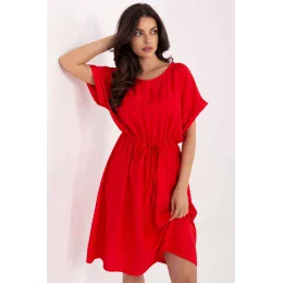Tieto letné viskózové šaty so stupňovitým strihom sú pohodlným a štýlovým dizajnom na každodenné nosenie. Sú vyrobené z ľahkej, priedušnej viskózy a poskytujú pohodlie aj počas horúcich dní. Hladký materiál a dĺžka nad kolená im dodávajú univerzálny charakter, ktorý sa osvedčí na prechádzky aj stretnutia s blízkymi. Krátke rukávy a klasický okrúhly výstrih zdôrazňujú jednoduchosť a ženskosť modelu. Ďalšou výhodou je viazanie v páse, ktoré pomáha zvýrazniť pás a dodať postave ľahkosť. Sú to ideálne letné šaty vzdušné, praktické a vždy módne.