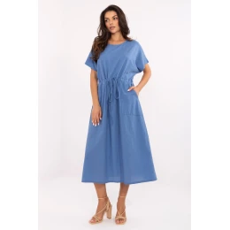 Priehľadné a pohodlné letné šaty so stupňovitým strihom, vyrobené z prírodnej bavlny. Hladká tkanina poskytuje pohodlie a dokonale sa hodí do každodenného štýlu. Model v midi dĺžke s krátkymi rukávmi a klasickým okrúhlym výstrihom. V páse je šnúrka, ktorá dokáže zvýrazniť postavu a prispôsobiť šaty postave. Ďalšou výhodou sú praktické vrecká, ktoré dodávajú funkčnosť a uvoľnenosť. Ideálna voľba na letné prechádzky, nákupy, do práce alebo na stretnutia s priateľmi. Univerzálne a nadčasové, budú skvelým základom pre mnohé štylizácie.
