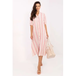 Lehké a pohodlné boho šaty, ideální pro každodenní letní outfity. Oversize střih zaručuje volnost pohybu a pohodlí při nošení, zatímco midi délka je skvělá jak na pláž, tak ve městě. Košilový model s knoflíky a výstřihem do V, který jemně zdůrazňuje krk. Vyrobena z směsi bavlny, polyesteru a dalších vláken, šaty jsou prodyšné, příjemné na dotek a praktické na teplé dny. Krátké rukávy a volný střih dodávají lehkost. Celkový vzhled dotvářejí pruhy a dekorativní vyšívaní, které dodávají charakteristický boho vzhled. Další výhodou jsou kapsy skryté v bočních švech, funkční a diskrétně začleněné do střihu. Ideální pro každodenní výlety, procházky, dovolené nebo jako stylový plážový přehoz.