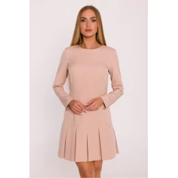 Klasické šaty vyrobené z hladké látky s matným povrchem jsou návrhem, který spojuje jednoduchost a eleganci v moderním provedení. Minimalistický design zaručuje, že se šaty skvěle hodí jak do každodenních outfitů, tak i na formální události. Model má decentní výstřih v podobě lodičkového dekoltu a dlouhé rukávy, které dodávají celku nadčasový charakter. Šaty se zapínají na skrytý zip vzadu, co zajišťuje pohodlí a estetické provedení. Střih je lehce přizpůsobený v horní části a zdobený spodní částí ve volánovém provedení, které dodávají siluetě lehkost a ženský šarm. Jednoduchá, pasovaná linie decentně zdůrazňuje postavu a mini délka dodává šatům moderní, dívčí charakter. Navrženo a ušito v Polsku, vytvořeno pro ženy, které ocení nadčasovou eleganci v minimalistickém provedení.