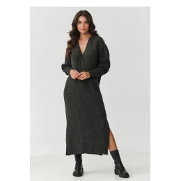 Vsadíte na výjimečnou eleganci a maximální pohodlí! Tato dlouhá svetrová šaty s pruhovaným vzorem jsou ideální volbou pro chladnější dny, kombinují v sobě nadčasový styl a pohodlí, ve kterém se budete cítit žensky a módně. Vyrobená z 100% akrylu vysoce kvalitní, je měkká, příjemná na dotek a snadno se udržuje. Volný střih s výstřihem do srdce krásně zdůrazňuje postavu, a praktické rozparky po stranách dodávají lehkost a volnost pohybů. Šaty skvěle ladí jak s elegantními botami, tak s těžkými botami v militaristickém stylu, vytvářejíce stylizace od neformálních po výraznější. K dispozici v několika stonovaných barvách: černé, cappuccino, čokoládové, grafitové melanž a šedé melanž, díky čemuž snadno vyberete ideální odstín pro svůj styl. Jsou to šaty, které se skvěle hodí jak na každý den, do práce, tak i na večerní setkání, vždy vypadáte módně a žensky.