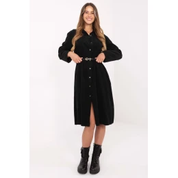 Tieto klasické a štýlové košeľové šaty s rozšíreným strihom sú skvelou voľbou na každý deň a do práce. Sú vyrobené z kvalitnej bavlny, sú priedušné, pohodlné a ľahko sa nosia. Model v midi dĺžke má dlhé rukávy, golier a zapínanie na gombíky, čo mu dodáva elegantný a zároveň ležérny charakter. V páse má zapínanie na opasok, ktorý krásne zvýrazňuje siluetu a umožňuje šaty prispôsobiť postave. Hladký vzor robí z týchto šiat nadčasový kúsok šatníka, ktorý sa dá ľahko kombinovať s elegantnými pracovnými topánkami aj topánkami s plochou podrážkou v každodennom outfite.