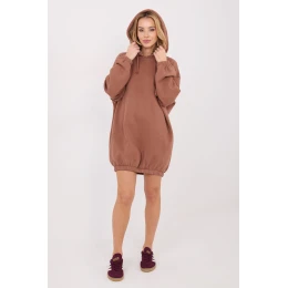 Trojštvrťové šaty v nadrozmernom štýle sú pohodlným a štýlovým návrhom na každodenné oblečenie. Sú vyrobené z kvalitnej bavlny s prídavkom elastanu, čo zaručuje pohodlie, pružnosť a voľnosť pohybu. Hladký vzor zdôrazňuje ich univerzálny charakter a umožňuje ich jednoduché kombinovanie s rôznymi doplnkami. Model s mini dĺžkou, dlhými rukávmi a praktickou kapucňou sa nosí cez hlavu. Všitý elastický lem v spodnej časti šaty jemne sťahuje, čím im dodáva moderný vzhľad a mierne športový charakter. Zateplenie poskytuje teplo počas chladnejších dní a vrecká ukryté v bočných švoch zvyšujú funkčnosť. Ideálna voľba na každý deň, na nosenie s teniskami, teniskami alebo členkovými topánkami.