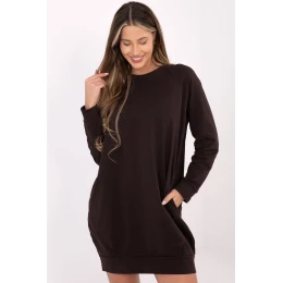 Tieto pletené šaty v jednoduchom strihu sú ideálnym návrhom na každý deň. Sú vyrobené z kvalitnej bavlny s prídavkom elastanu, čo zaručuje pohodlie pri nosení a voľnosť pohybu počas celého dňa. Hladký materiál im dodáva univerzálny, minimalistický charakter, vďaka čomu sa ľahko kombinujú s rôznymi štýlmi. Model s dĺžkou po kolená a dlhými rukávmi sa osvedčí v každodenných situáciách, v práci, na prechádzke alebo pri stretnutí s priateľmi. Okrúhly výstrih zdôrazňuje klasický tvar šiat a absencia zapínania zvyšuje komfort pri používaní. Ďalšou výhodou sú praktické vrecká ukryté v bočných švoch, ktoré zvyšujú funkčnosť a dodávajú celku voľný, ležérny štýl.
