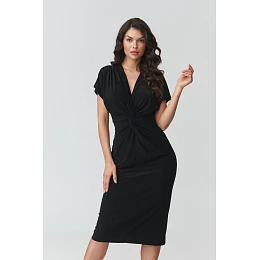 Elegantní midi šaty jsou skvělou volbou pro ženy, které ocení klasickou eleganci a moderní design. Model se vyznačuje jedinečným střihem, který krásně zdůrazňuje postavu a zajišťuje pohodlí při nošení. Ženský výstřih ve tvaru písmene V jemně zdůrazňuje horní část postavy a opticky prodlužuje krk. Centrálním prvkem designu je efektní stahování v pasu, které tvaruje figuru a dodává šatům elegantní charakter. Jemný materiál se přirozeně skládá do záhybů, díky čemuž přiléhavé midi šaty krásně zdůrazňují pas a boky, zároveň poskytují volnost pohybu. Volnější rukávy dodávají celku lehkost a dělají z šatů skvělou volbu jak na každý den, tak i na formální události. Délka po půl lýtku dodává stylizaci eleganci a činí z midi šatů univerzální prvek ženského šatníku.