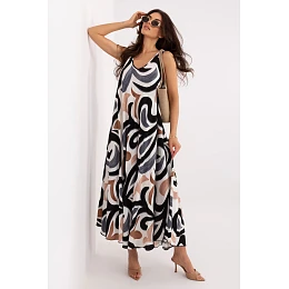 Šaty rozšíreného strihu sú ľahkou a účinnou ponukou ideálnou na každodennú štylizáciu. Ich voľný strih krásne sedí na postave a poskytuje pohodlie a priedušnosť aj počas teplejších dní. Model v maxi dĺžke upúta pozornosť módnou potlačou, ktorá celku dodáva výrazný a štýlový charakter. Výstrih do V jemne zvýrazňuje dekolt a dodáva šatám ženskú ľahkosť. Šaty sú vyrobené z príjemnej viskózy, sú priedušné, mäkké a pohodlné na nosenie. Model bez rukávov a bez zapínania je pohodlný a praktický na každodenné nosenie. Je skvelou voľbou na letné dni, spája voľnosť, pohodlie a módny, výrazný štýl.