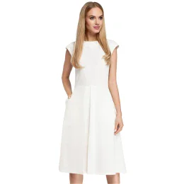 Tieto klasické midi šaty vďačia za svoj profesionálny vzhľad priliehavému vrchu s mini rukávmi a trapézovej sukni s kontrastným pásom uprostred, ktorý zároveň upozorňuje na výrazne zvýraznený pás.