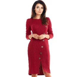 Elegantné šaty strihané na postavu s 3/4 rukávmi. Gombíky našité na prednej strane v asymetrickej línii dodávajú šatám charakter. Šaty sú vyrobené z mäkkého úpletu