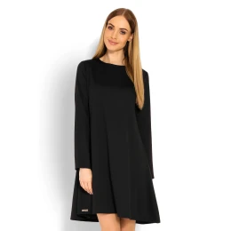 Voľné šaty s dlhými rukávmi. Šaty s lichobežníkovým strihom.