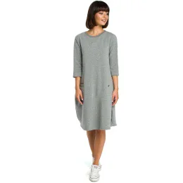 Pohodlné šaty s vreckom z mäkkého úpletu. V chladnejších dňoch ju možno použiť ako tuniku k nohaviciam alebo legínam. Voľný strih neobmedzuje v pohybe a prešívaní a rebrované lemy dodávajú tomuto každodennému štýlu originalitu. Šaty majú na bokoch vrecká.