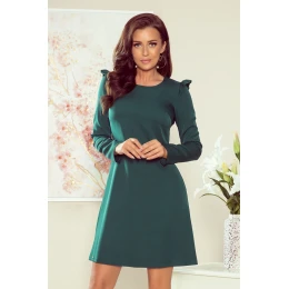 Trapézové šaty s volánikmi na ramenách a dlhými rukávmi. Vyrobené z tkaniny príjemnej na dotyk. Značka Numoco.