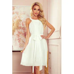 Šifónové šaty Alizee s opaskom a zaväzovaním na chrbte. Šaty vo farbe ecru. Značka Numoco. Vyrobené v Poľsku.