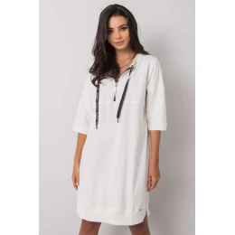 Bavlnené šaty vo farbe ecru, so zipsom. Šaty s 3/4 rukávmi, dole s rázporkami.