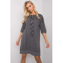 Tmavosivé bavlnené šaty so zapínaním na zips. Šaty s 3/4 rukávmi a rázporkami v spodnej časti.