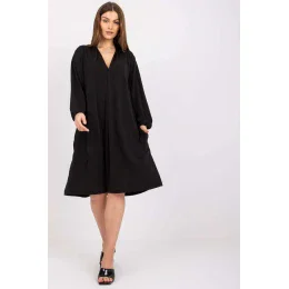 Voľne padnúce šaty s dlhými rukávmi. Posuvné vrecká na bokoch. Ideálna voľba na mnohé príležitosti.