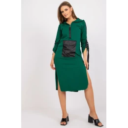 Dámska mikina s dlhými rukávmi v štýle šiat. Šaty s kapucňou, bočné rázporky. Na prednej strane je našité vrecko. Rukávy s nastaviteľnými popruhmi.