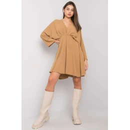Tmavobéžové šaty s trojuholníkovým výstrihom a rozšíreným strihom. Ideálna voľba na mnohé príležitosti.